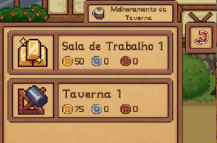 Estou quase finalizando todas elas, é muito satisfatório, tirando pelo fato que não vi diferença no primeiro ponto, o ícone da limpeza, que diz melhorar a velocidade da limpeza, e não sei dizer se é um bug, mas honestamente esse ponto está indiferente até o momento. O segundo é muito bom e foi fundamental, ele reduz o preço de compra e aumenta o valor da venda. O terceiro também foi necessário, ele reduz o tempo de produção e ainda aumenta a quantidade de produtos criados. O da plantinha aumenta o rendimento dos itens plantados na sua mini fazenda, e o último aumenta o limite de correr do seu boneco, e também aumenta a velocidade de atendimento do barman.